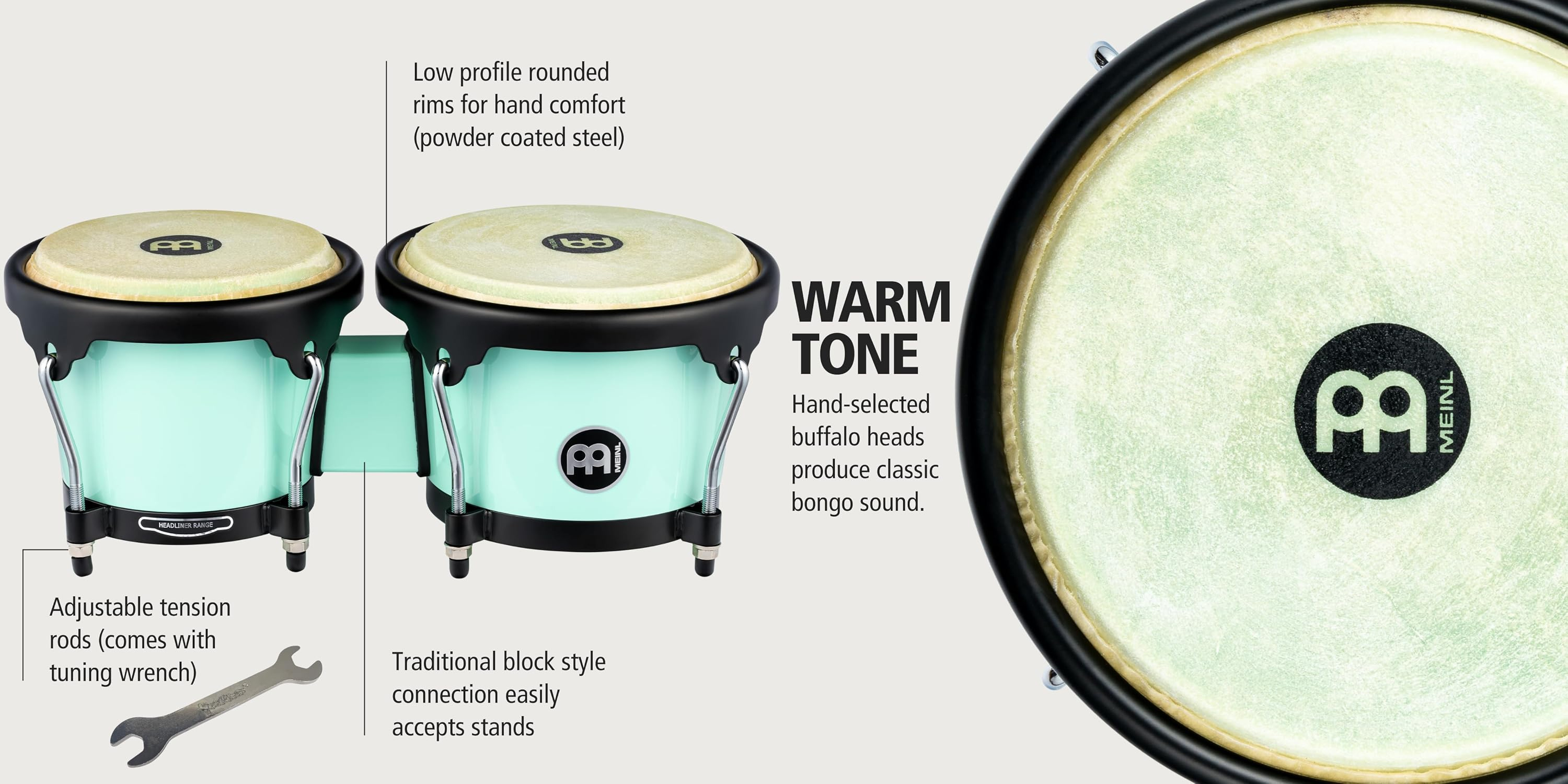 El Bongó Meinl Journey Series HB50SF está diseñado con cascos de ABS plástico, un material conocido por ser ecológicamente sostenible e increíblemente duradero. Esta robustez asegura que el instrumento soportará los rigores del uso constante, ya sea en casa, en ensayos o en presentaciones. Las membranas de búfalo natural seleccionadas a mano en diámetros de 6.5 pulgadas (macho) y 7.5 pulgadas (hembra), proporcionan el sonido cálido y resonante característico de los bongós tradicionales, con una respuesta excepcional que permite al percusionista explorar una amplia gama de dinámicas y timbres. Los aros redondeados de 2.5 mm ofrecen una comodidad superior al tocar, minimizando la fatiga durante largas sesiones.