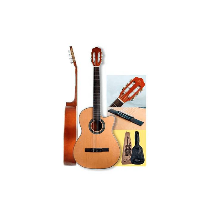 Guitarra Electroacústica Nylon Sevillana cuerpo delgado con sacado