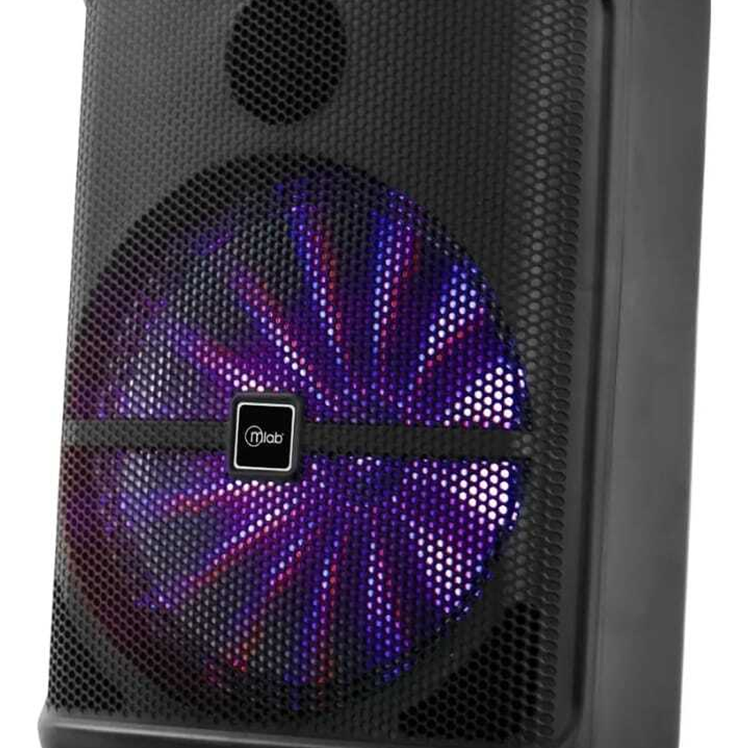 El parlante Bluetooth Karaoke Sound Bass 12” de MLAB combina potencia, portabilidad y diversión. Incorpora tecnología TWS para enlazar dos parlantes de forma inalámbrica, luces frontales que crean un ambiente festivo, micrófono inalámbrico listo para karaoke y soporte para smartphone o tablet. Su batería recargable y manilla permiten transportarlo fácilmente para cualquier ocasión.